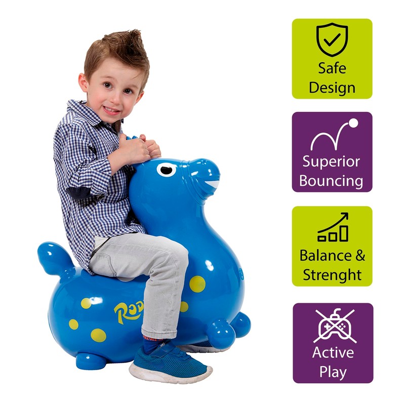 - Inflatable Bouncy Horse - Rody provides all day playtime fun while building muscle and improving motor skills. Combined with its smiling expression, this lovable character is an immediate appeal to children.
