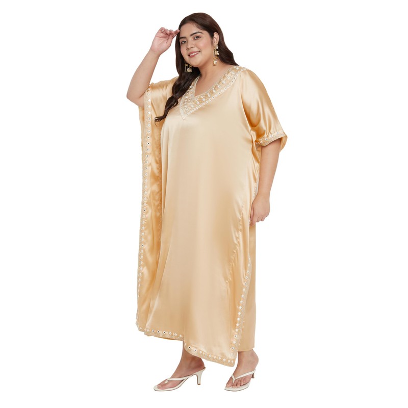 - High Quality and Well Made: Each kaftans dress in our range is made from 100% soft silky Satin with gold embroidery. This makes them perfect on hot days or when you want to wear a longer-length dress. Each dress is approximately 52" long and is suitable for formal and casual wear.