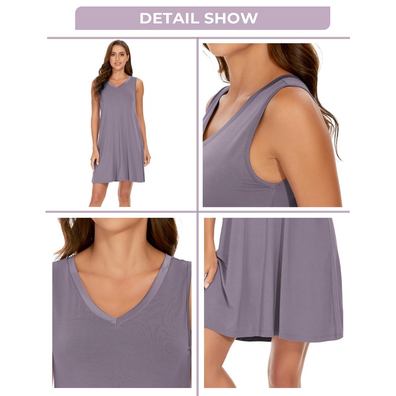 GYS Womens Bamboo-Derived Viscose Nightgowns Soft Sleeveless V Neck Nightdress Lightweight Sleep Shirt S-4XP, Violet, Large