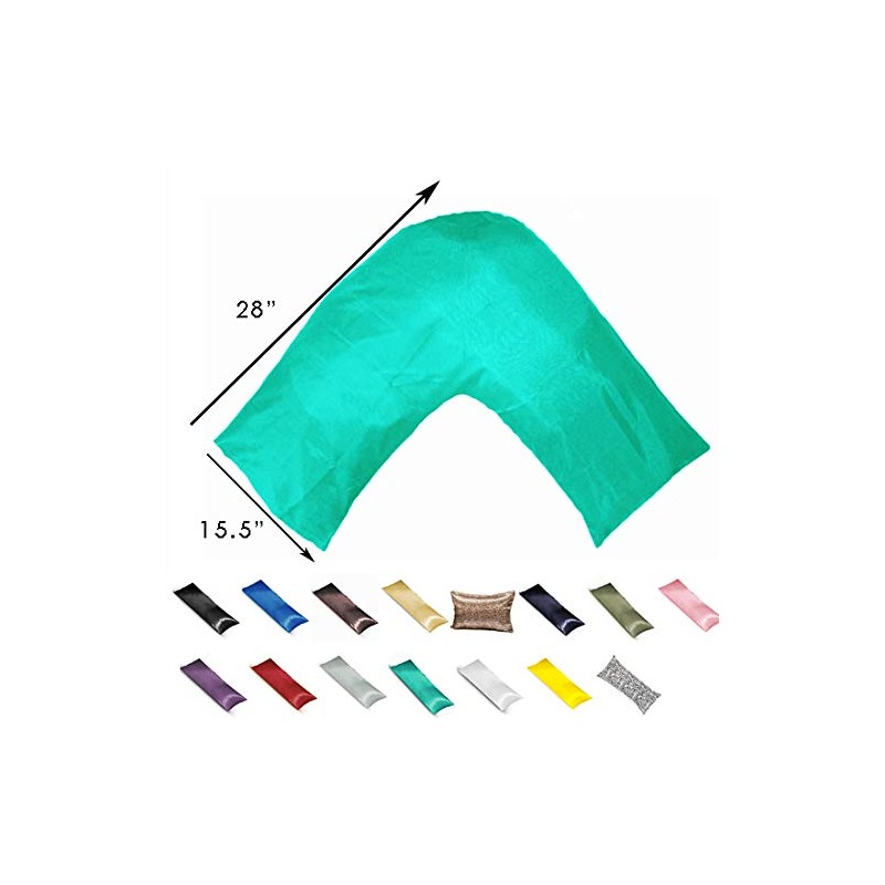 Gyulin Silky Soft Satin Soild Envelope Style V Shaped/Tri/Boomerang Pillow Cover Pillowcase Pillow Protector Cushion Cover for Orthopaedic/Pregnancy/Nursing Pillows,Only Cover No Insert Turquoise
