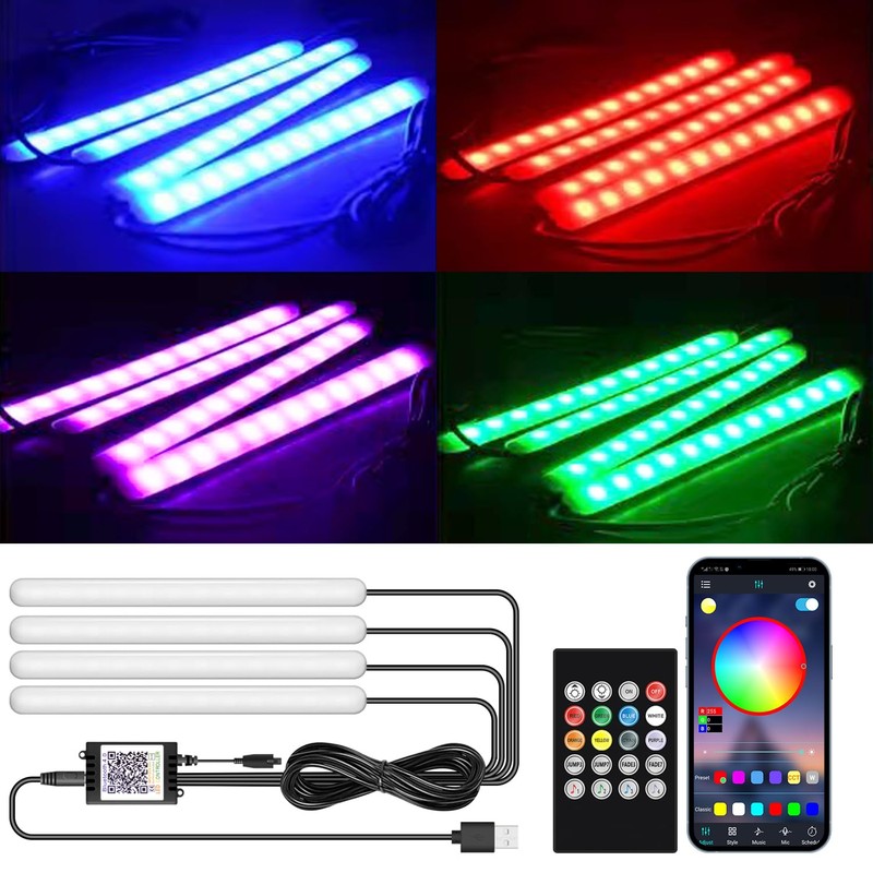 GZ5CG Car Led Light Interior Under Dash Foot Well Light RGB, 29 Modes Static/Gradient/Strobe, Music Sync, with Remote App Timer, USB 5V, Inside Car Lighting