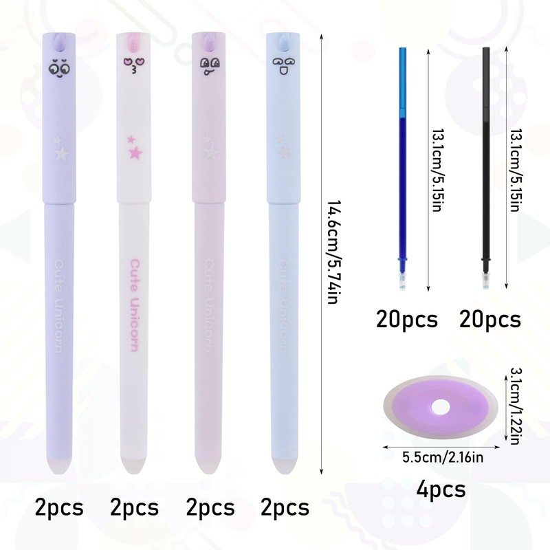 - Smooth writing: 0.5mm pen with eraser, no ink leakage or smearing when writing; they provide a smooth writing experience and clear lines. Erasable cute pens add more wonderful experience to your writing and drawing process.