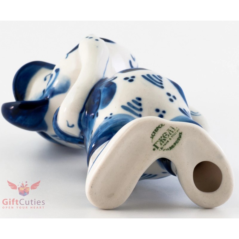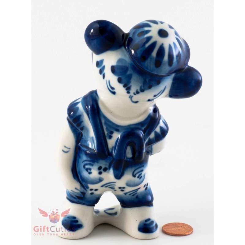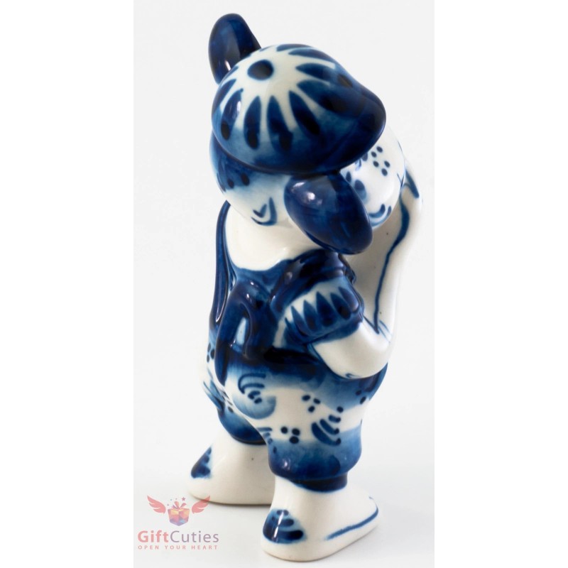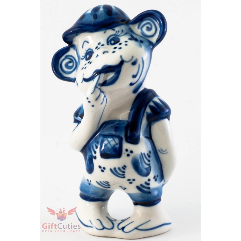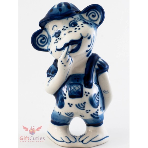 Gzhel Monkey Figurine handmade and painted in blue color.