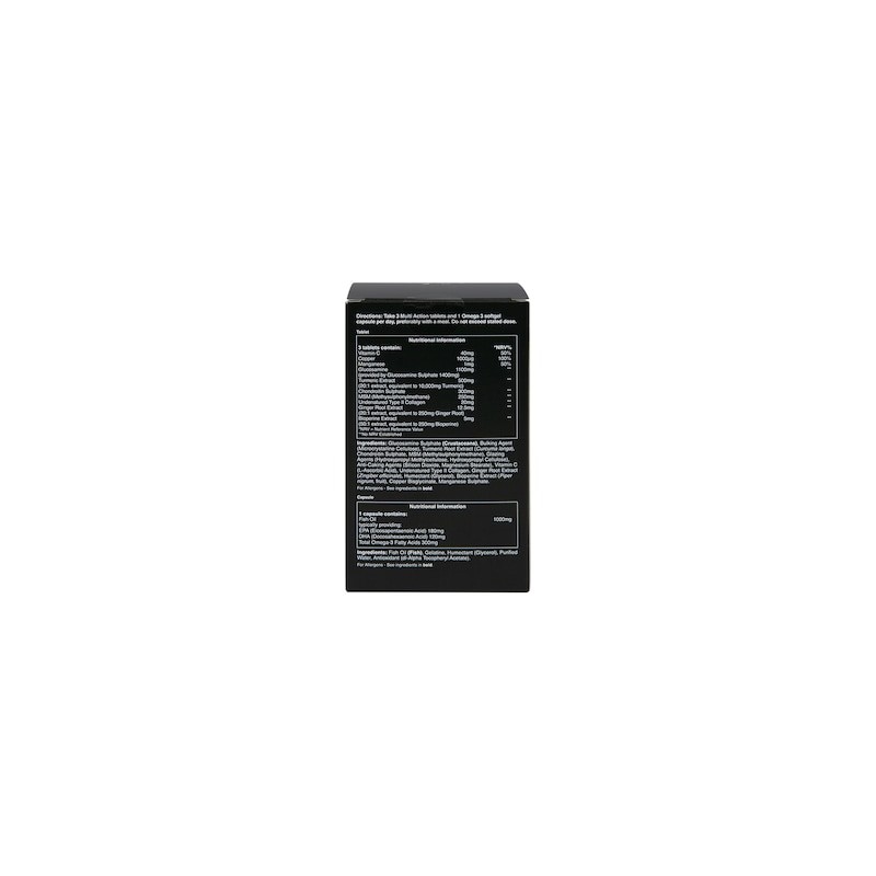 Take three of the Holland & Barrett Expert Multi Action Joint Support tablets and one Omega 3 soft gel capsule each day, preferably with a meal.