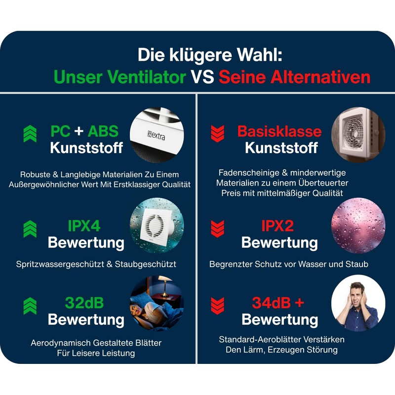 - High-quality material: made in the EU. This ventilation fan is made of durable ABS plastic and retains its technical and aesthetic properties even in the most extreme conditions. It can be used at temperatures from +4 °C to +40 °C and remains rustproof. The fan is resistant to UV rays. Fan for wall ceiling window.