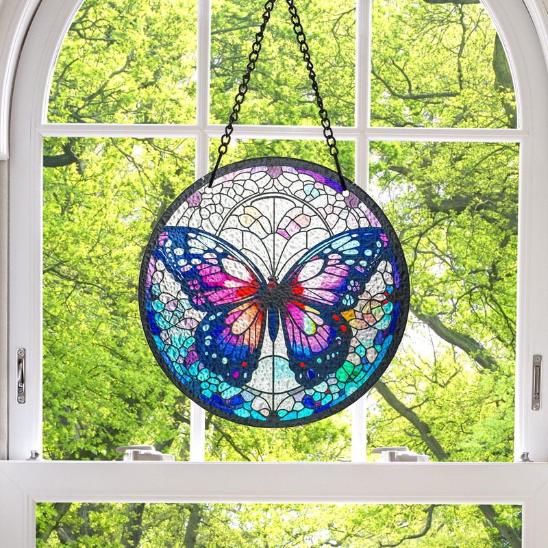 Our 6-inch hand-painted butterfly stained glass window hanging is not just a decoration—it’s a work of art.