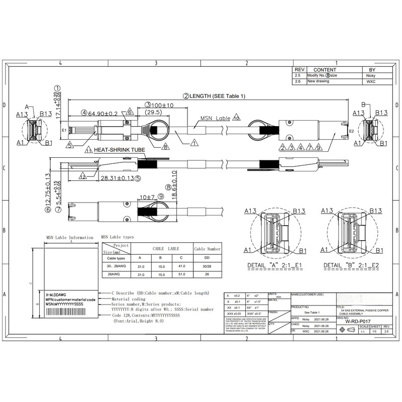 • Durable 26 Pin SFF-8088 connectors in heavy-duty die-cast zinc backshells and high-performance four-channel InfiniBand cable support data transfer rates up to 6 Gbps