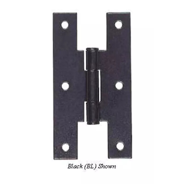 Black "H" hinge with square corners for flush doors. Wrought steel Semi-gloss Black finish. Screws not included. Order SCR558RHHBLK for screws. Priced Each.