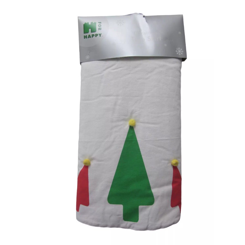 H is for Happy NWT H is for HAPPY Large 48" mODERN CHRISTMAS Tree Skirt w/ Po...