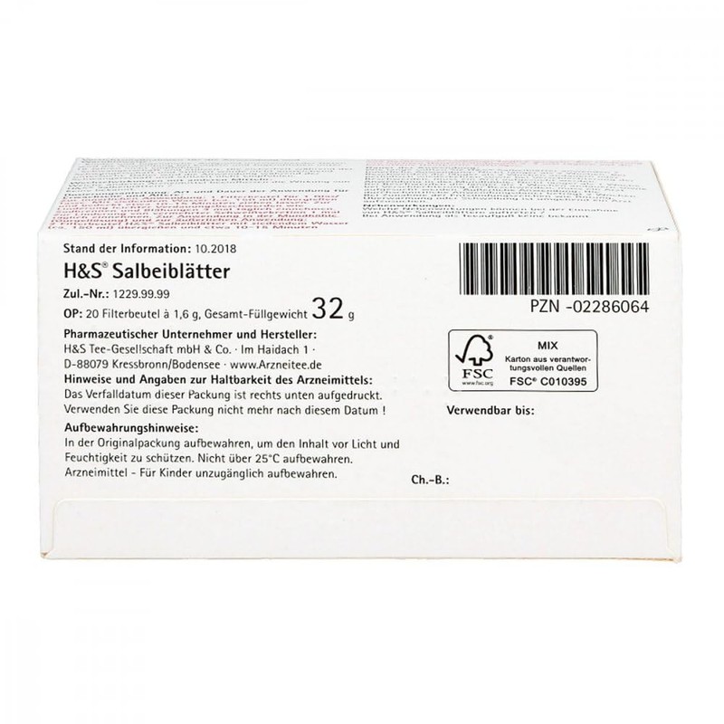 H&S Sage Leaf Tea Filter Bags 20 x 1.6 g