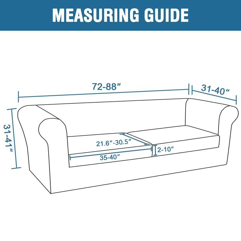 - CUSTOM FIT: Our newest modern stretch sofa slipcovers are constructed with 3 PIECE style (including 1 base cover and 2 individual cushion covers). Allow you to create the custom upholstered look. Best fits sofas 72 to 88 inches wide (outside arm to outside arm, straight across), 31 to 41 inches tall. Each individual cushion cover fits up to 35 to 40 inches length, 21.6 to 30.5 inches width, 2 to 10 inches height