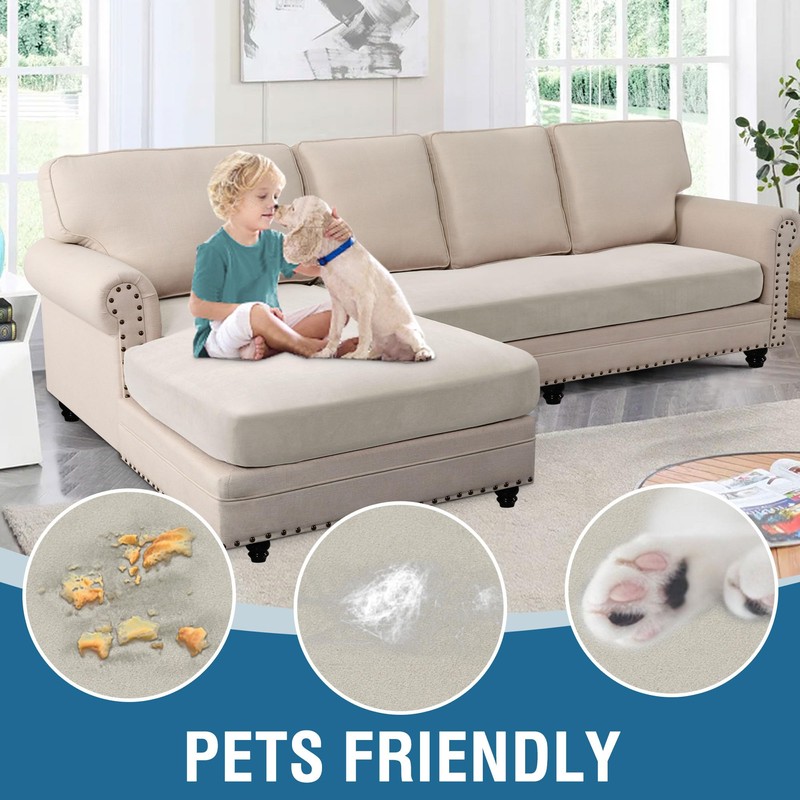 H.VERSAILTEX Fleece L Shaped Couch Cover 2 Piece Stretch Couch Covers for Sectional Sofa Thick Soft Sofa Cover for Dogs Feature Comfortable and Durable Fabric, (3 Seater + 1 Chaise, Pale Oak)
