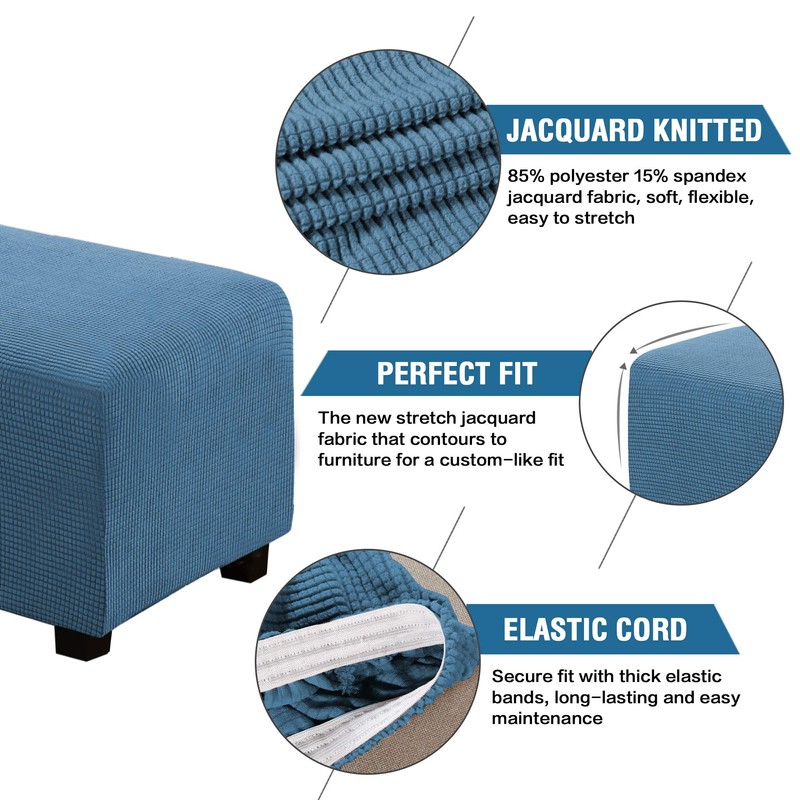 - GREAT FIT: This innovated 1 piece ottoman cover is crafted from durable and soft high stretch knitted jacquard fabric. Suitable for most rectangular and 5 sided storage ottomans. X-Large size fit most ottoman with 33”-38" length, 28”-33" width, 15”-17" height. Feature one-size-fits-most, kindly measure before ordering
