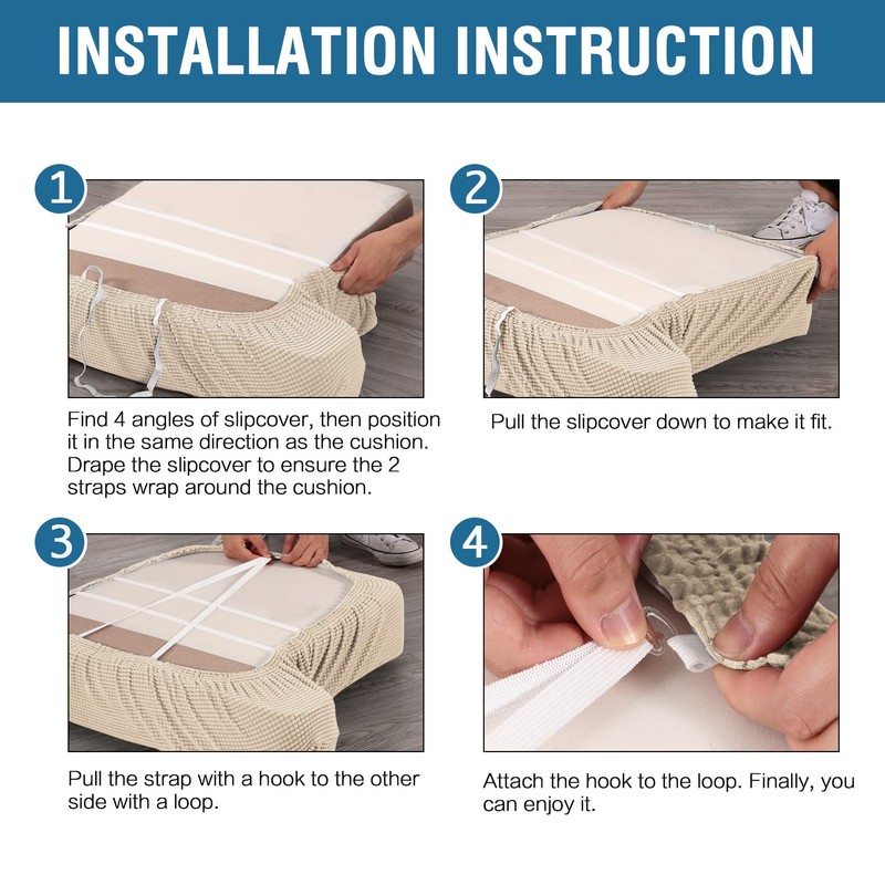 - The bottom of elastic rope prevents sliding. And in order to better stay in place, the bottom of cover add three additional elastic straps(except the box cushion).