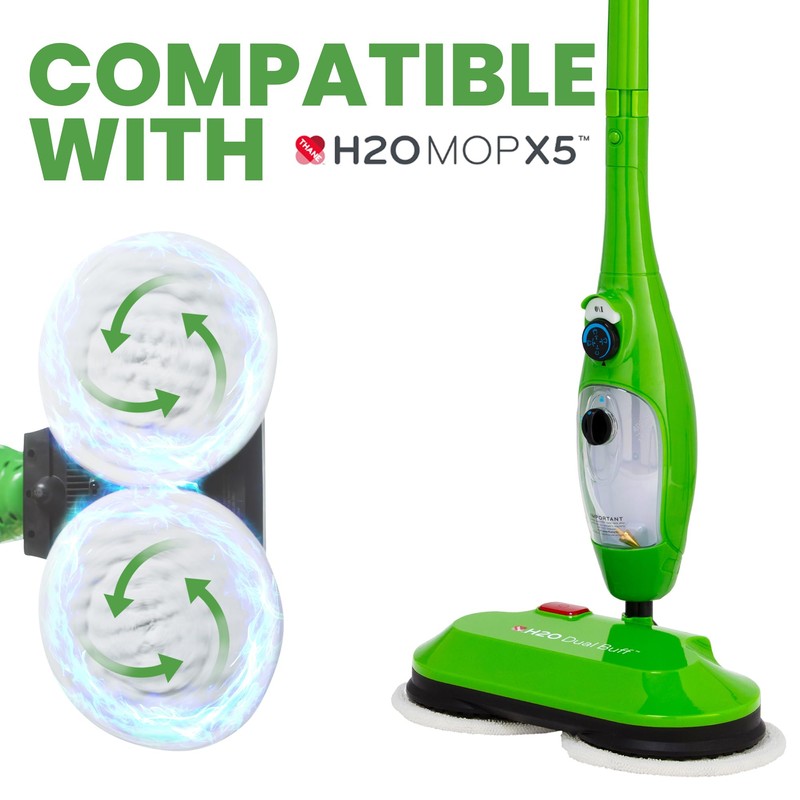 H2O MOP X5 Dual Buff Steam Mop Head Attachment - Great For Hardwood, Tile Floor Buffing, Cleaning and Steaming - Includes 2 Soft Scrub Washable Pads