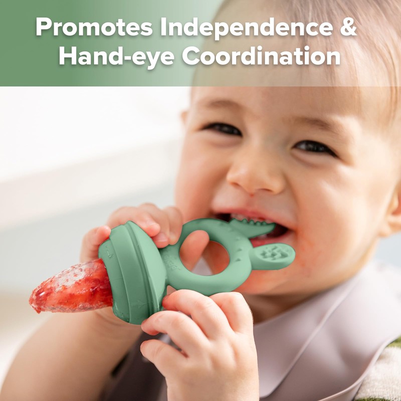 Haakaa Baby Fruit Food Feeder & Mini Freezer Nibble Tray Combo, Breastmilk Popsicle Molds for Cooling Relief, BPA Free Silicone Feeder for Safe Infant Self Feeding, 4 Month+ (Pea Green)