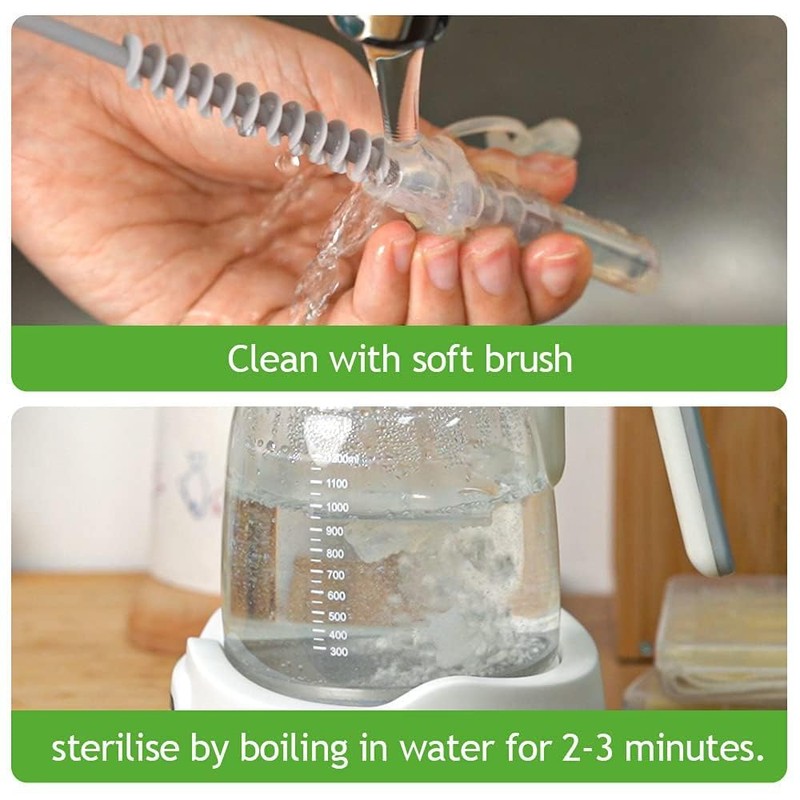 - Clean & Care: Sterilize each colostrum collector before use with any steam sterilizing system or by boiling in water for 2-3 minutes. Do not use bleach-based agents to clean this product. Use all the colostrum in the container for one feed and discard any left over.