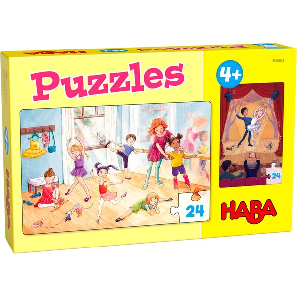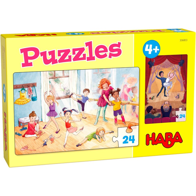 - HABA Ballerina puzzles: a puzzle set with 2 ballet motifs of 24 pieces each