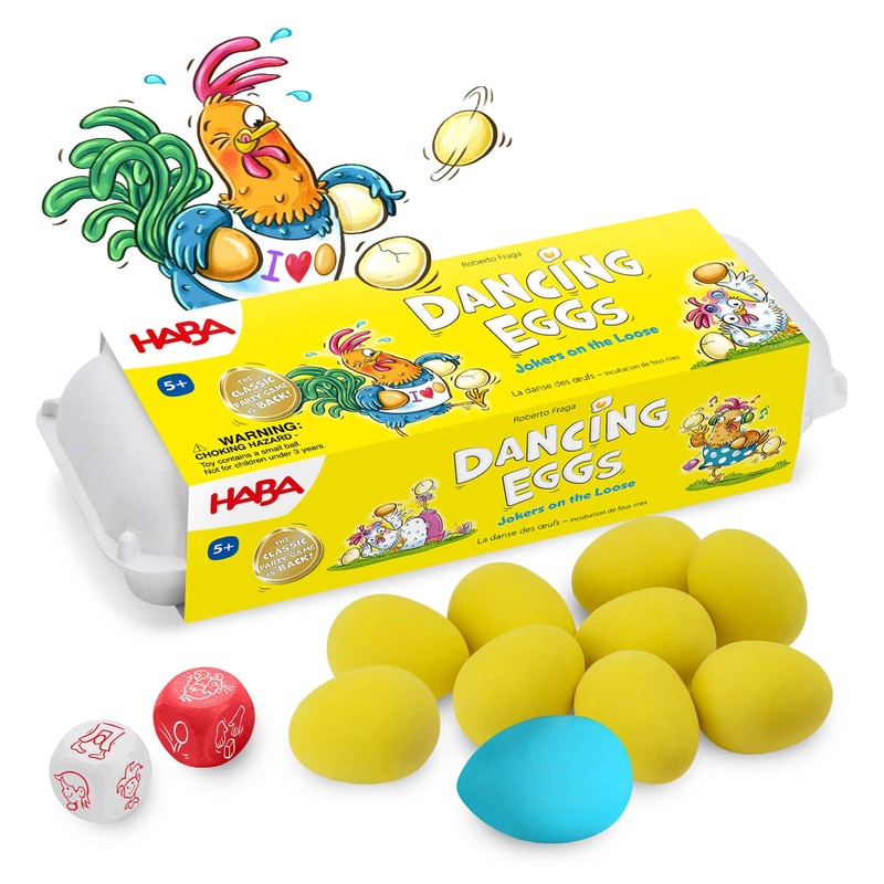 HABA Dancing Eggs – Active Kids Game for Ages 5+, Award-Winning Fast-Paced Party Games for Adults and Family with Bouncing Rubber Eggs and Dice