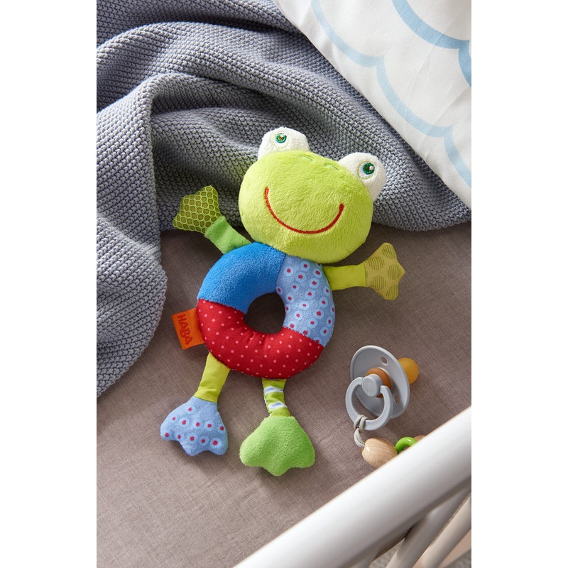 - The Fredi frog grasping toy from HABA is a colourful fabric toy for babies from 6 months with many details for gripping, watching and listening