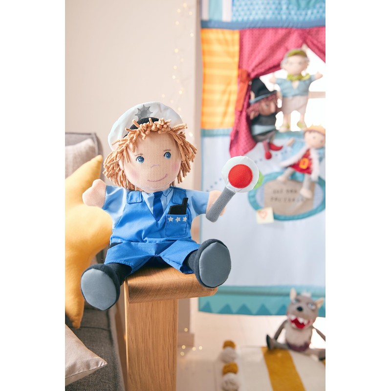 - The police hand puppet from HABA for children aged 18 months and over ensures law and order in the Kasperle Theatre