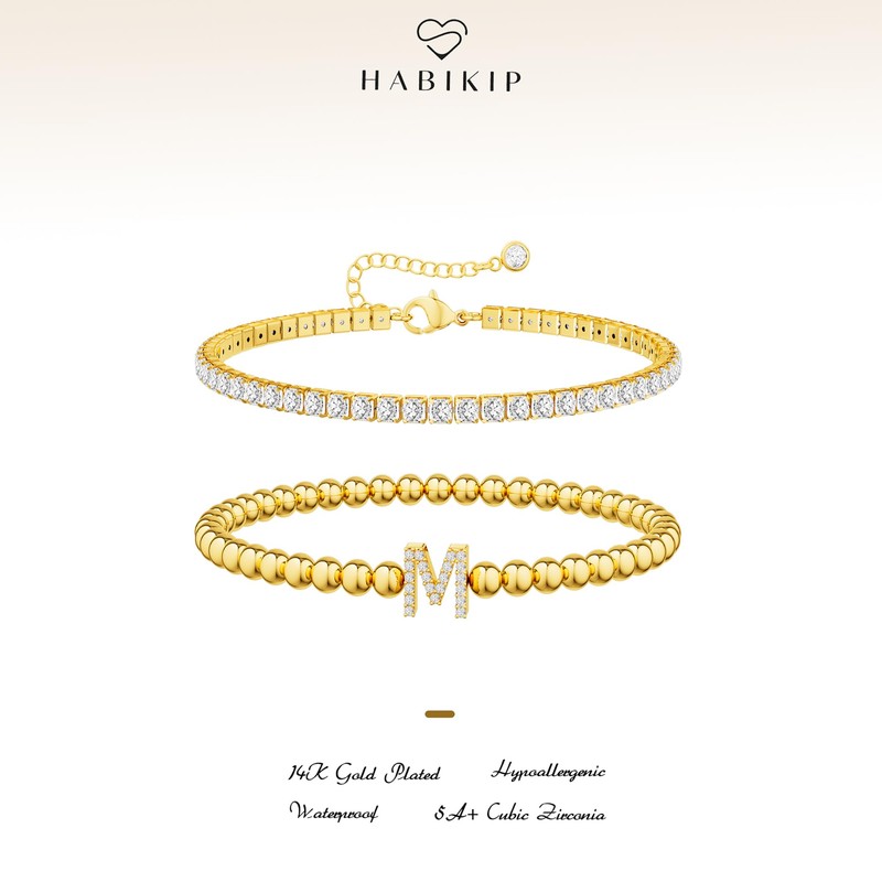 - HABIKIP Tennis and Beaded Initial Bracelet – a sophisticated fusion of style and grace that effortlessly complements any attire. With its minimalist design, it's a great jewelry to elevate your look with a touch of contemporary flair