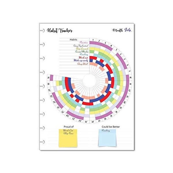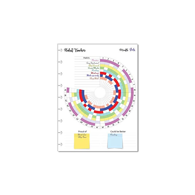 Habit Tracker Inserts for 9 Disc Planners, Habit Log, Monthly Habit Planner for Medium Size Planners(PLANNER SOLD SEPARATELY) (9 Disc Classic (7" x 9.25"))