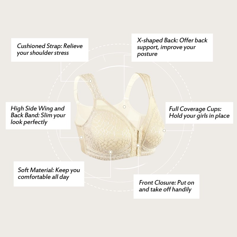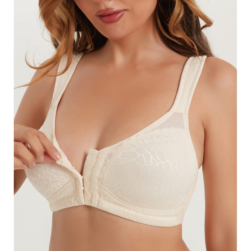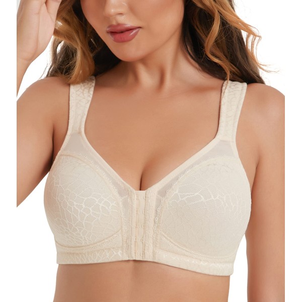 HACI Women's Front Closure Full Coverage Back Support Posture Bra Wireless Comfy(Nude,46B)