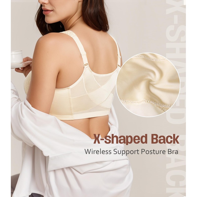 - X-shaped Back: Featured with criss-cross band, our posture bra pull your shoulder back gently and relieve the pain of your back and shoulder. Offer back support, improve your posture.