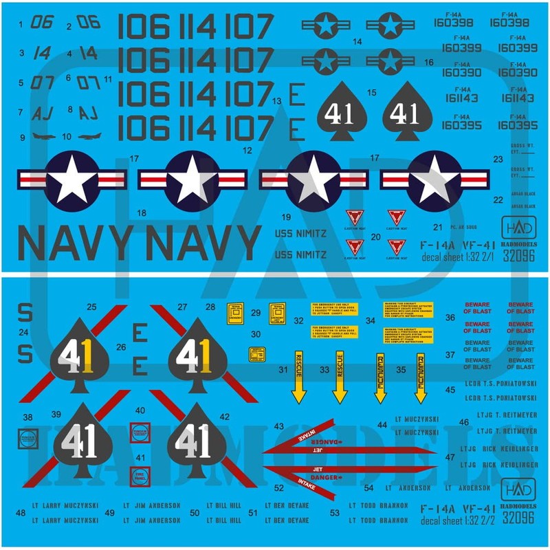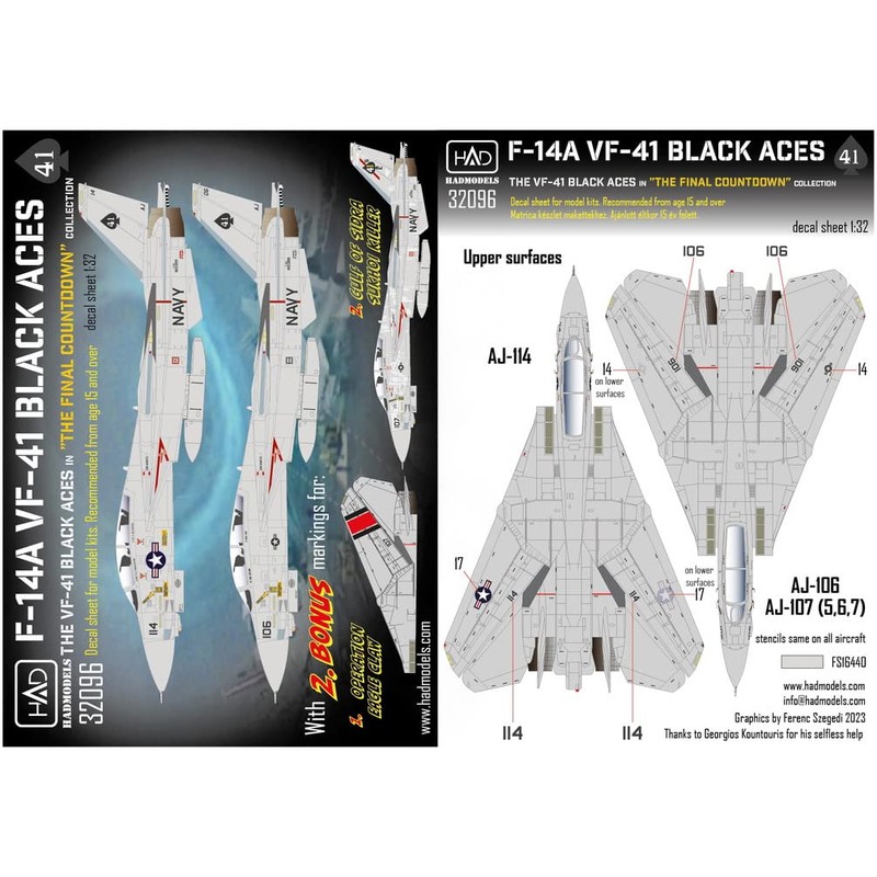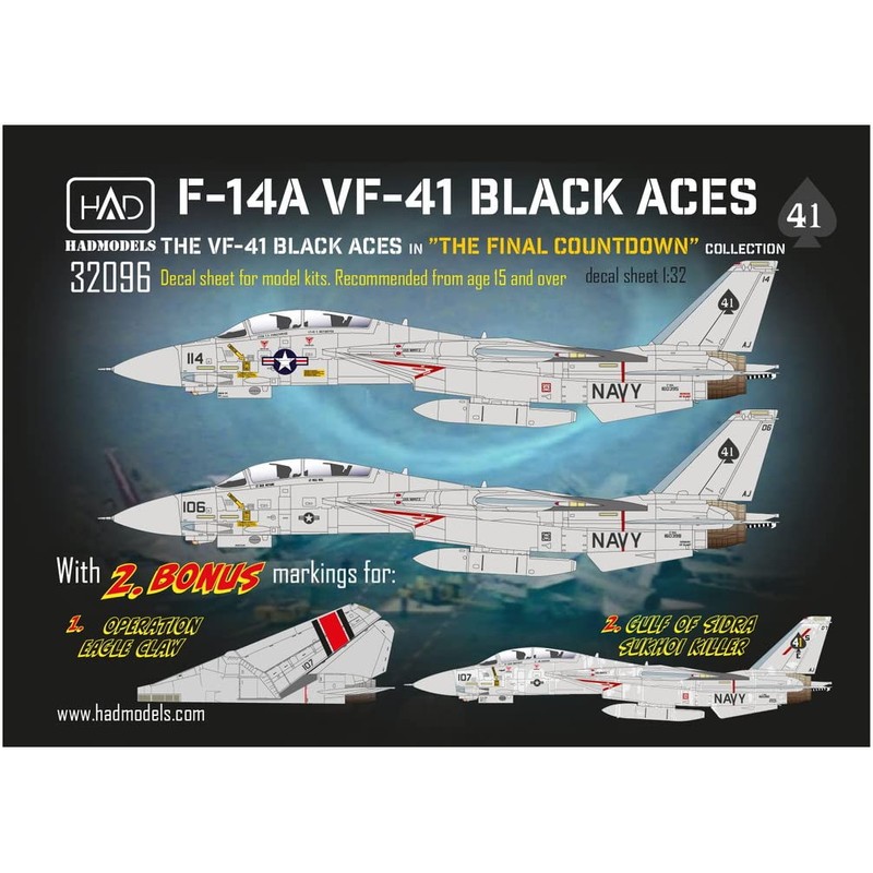 Hadモデルズ 1/32 F-14A VF-41 ブラックエイセス プラモデル用デカール HAD32096