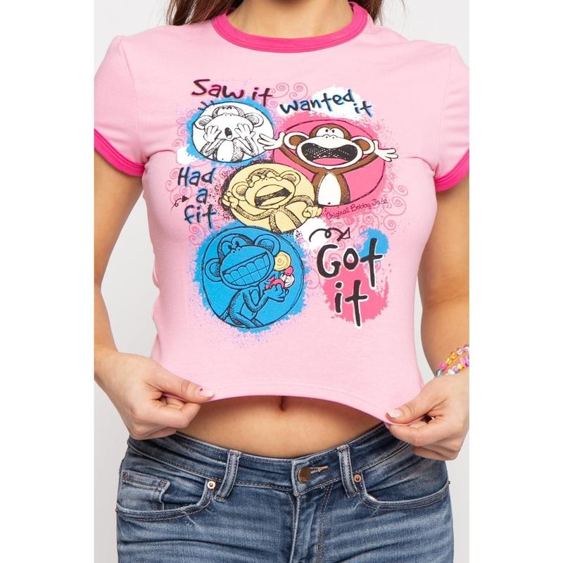 Had A Fit - Bobby Jack Crop Ringer Top - Pink - size: Large (8/10)