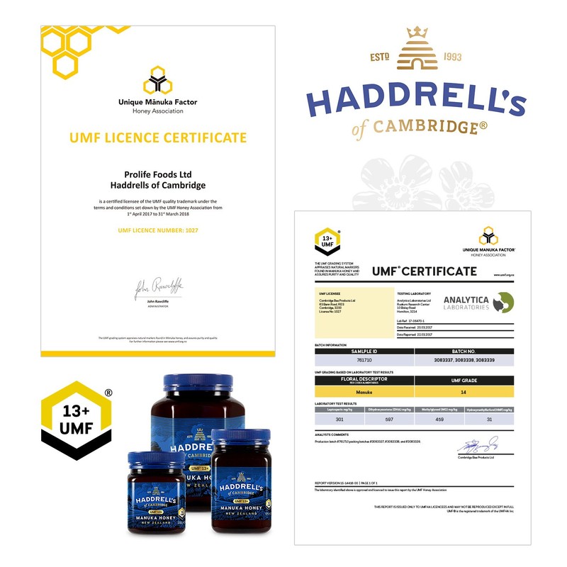 Haddrell's of Cambridge is a premium Manuka honey producer from New Zealand. All Haddrell's honeys are UMF certified and have a controlled, secured MGO content.