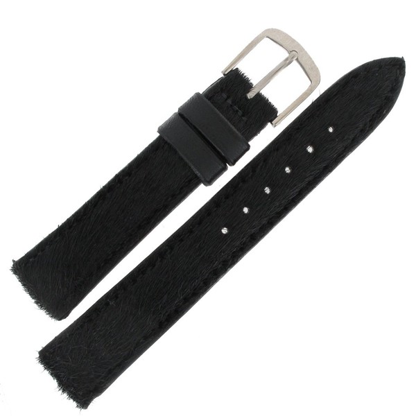 Hadley-Roma LS1010 16mm Watch Strap Band Black Fur Genuine Hair Calfskin Ladies