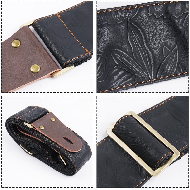 Haecsfl Haecsfl Adjustable Guitar Strap Includes 2 Strap Locks & 2 Matching Picks & 1 Picks Holder & 1 leather Strap Button.Leather ends Guitar Shoulder Strap(1-Carved Black)