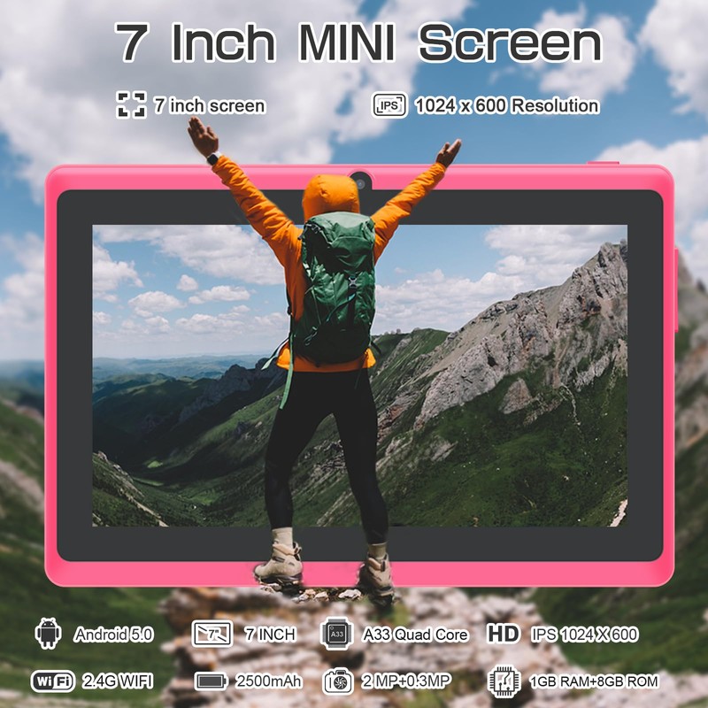 • Sufficient storage space - With 1GB RAM and 8GB ROM, this tablet offers plenty of space to store files, apps, photos and videos. With a memory card, you can expand storage space up to 32 GB, so you can store even more.