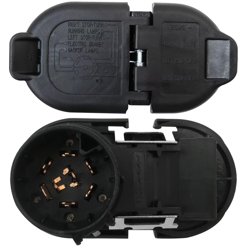 - Specifications: Placement on Vehicle:Rear. Material: ABS, Brass Contacts. Connection: 7-Pin Round / 4-Pin Flat