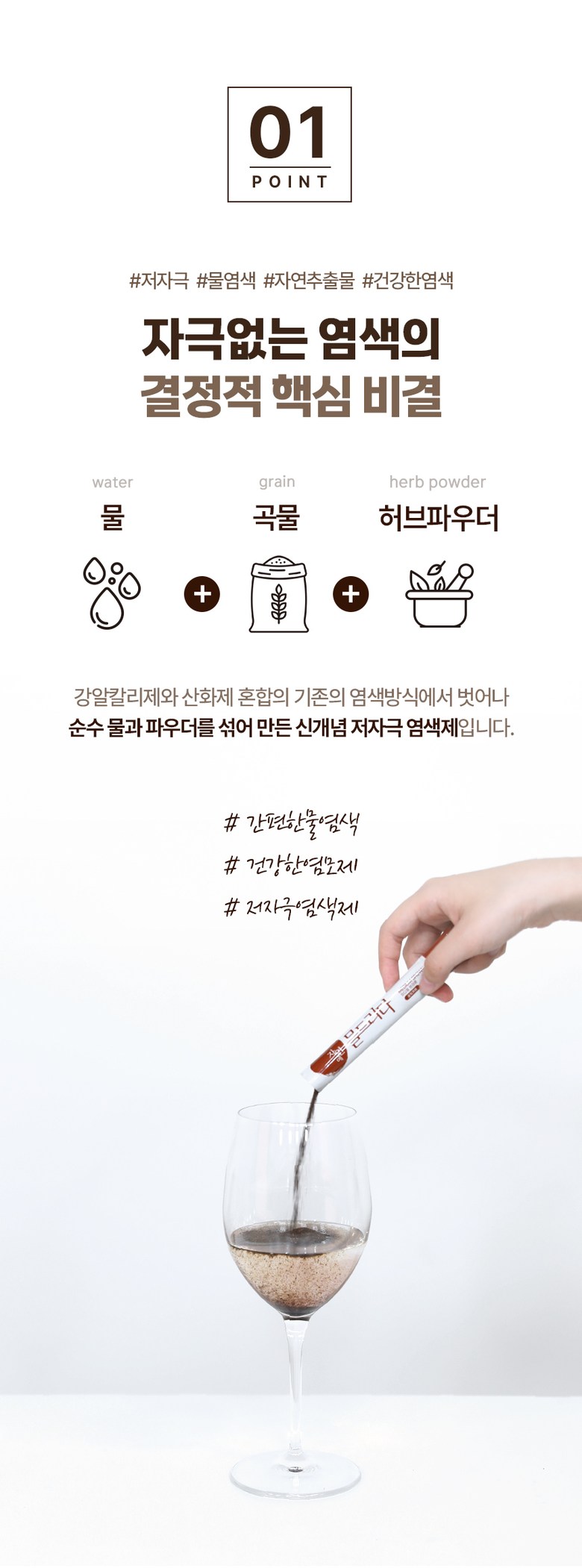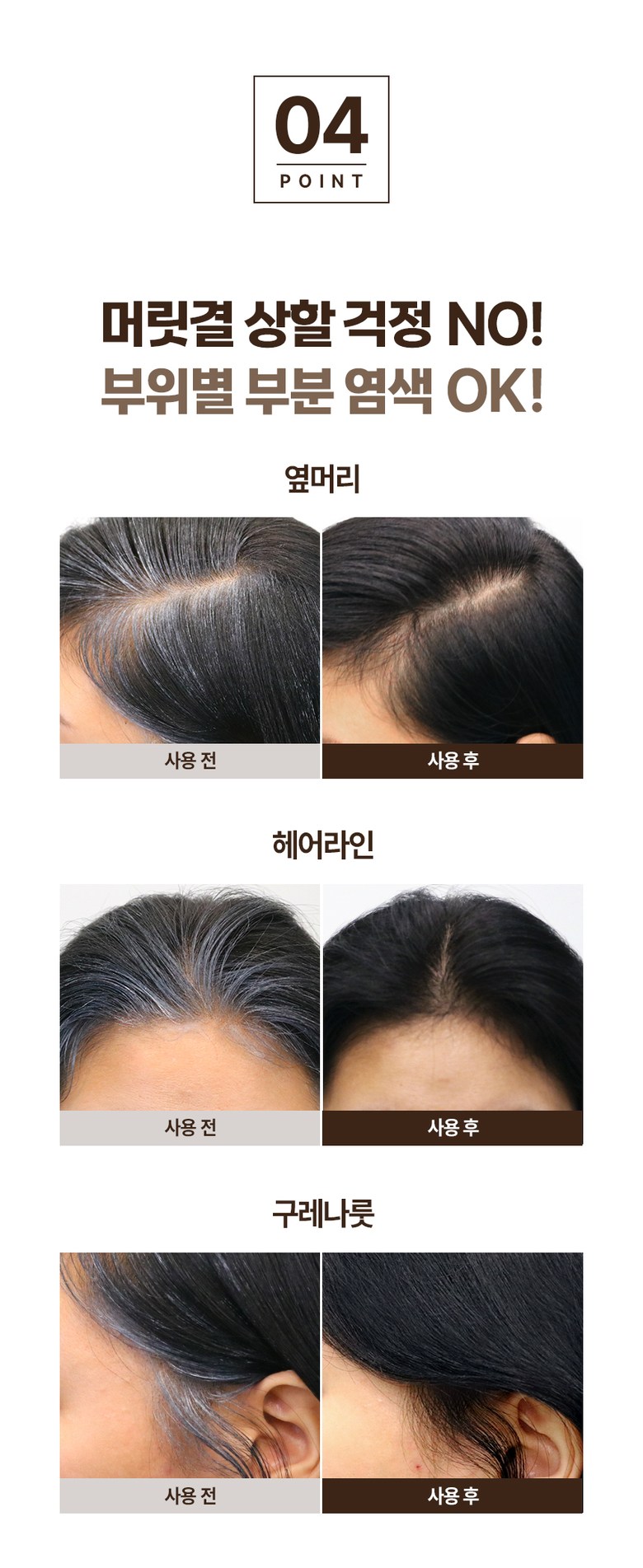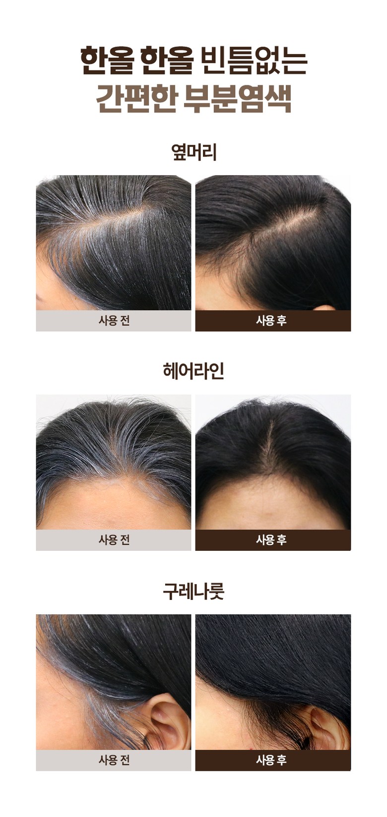 Haesol water dyeing, 3 batches, hypoallergenic gray hair dye, dark brown / 헤솔 물염색 3회분 저자극 새치 염색약 다크브라운
