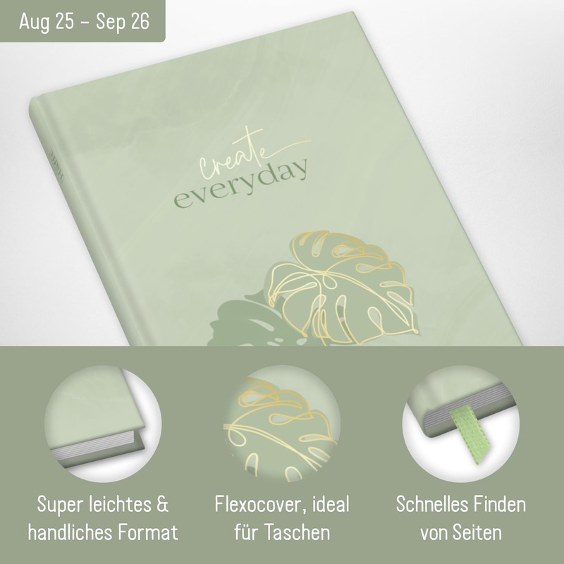 - Clear and clear – the working week is shown on the left, on the right the weekend with space for notes, inspirations, deadlines or to-do lists. In addition, durable thread binding, flexible yet robust cover