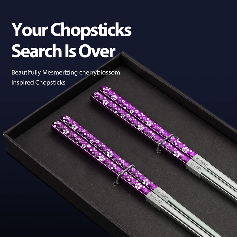 - SAKURA INSPIRED ART: If you are one who enjoys Asian cuisine, Korean noodles, Japanese sushi, Chinese dumplings, or Thai Food, these Hagary Reusable Stainless Steel Chopsticks are for you! These classic Japanese-style stainless steel chopsticks are suitable for households that use them often. Designed in Korea, add an element of Zen to your dining table with the Cherry Blossom Pattern and have a great dining experience with your loved ones. Great for those who have contemporary tastes.