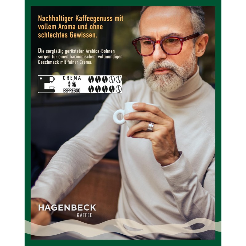 HAGENBECK ENTRÉE Crema Espresso Pack of 10 | Biodegradable Coffee Capsules | Compatible with Nespresso®* Machines | Sustainable & Aluminium Free | 100% Compostable Organic Bagasse Capsules