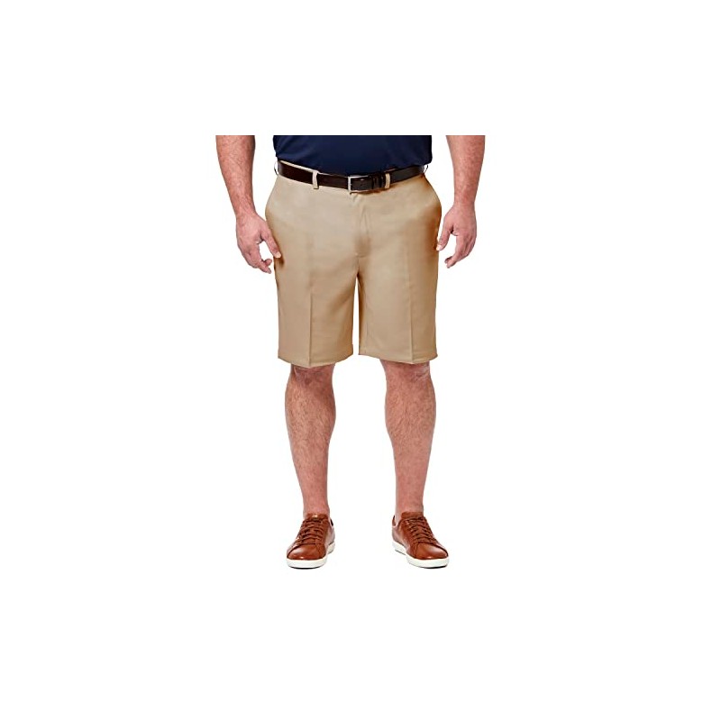 Haggar Men's Cool 18 Pro Straight Fit Stretch Solid Flat Front Short, Khaki, 38