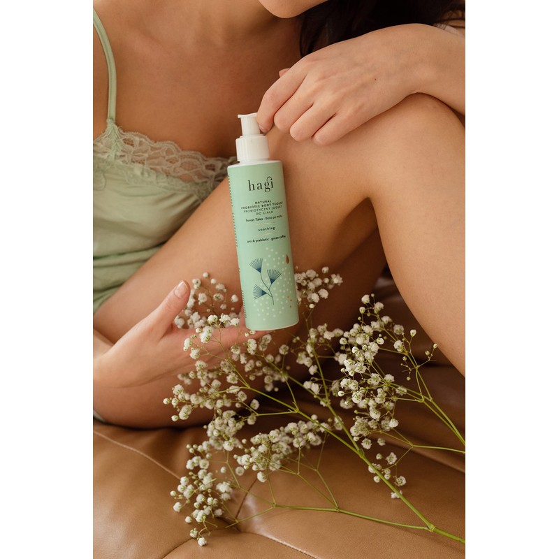 Hagi Forest Tales Natural Probiotic Body Yogurt, Moisturising Formula with Probiotics, Apple Extract, Horse Chestnut, Coffee and Chlorophyll for Regenerated, Smooth Skin, 200 ml