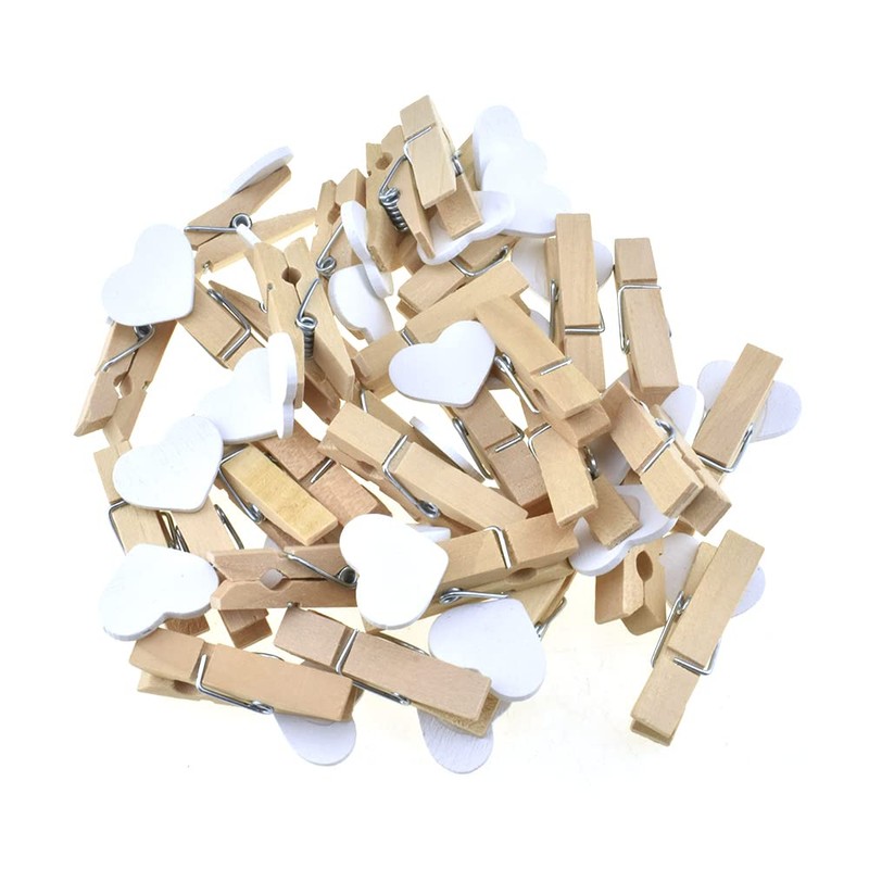 HAHIYO Heart Painted Mini Wooden Clothespin Clip Photo Paper Holders 1.38inch Tight Clamp Not Fray Rope Post Notices Handy Read for Hanging Postcard Wedding White 50PCS