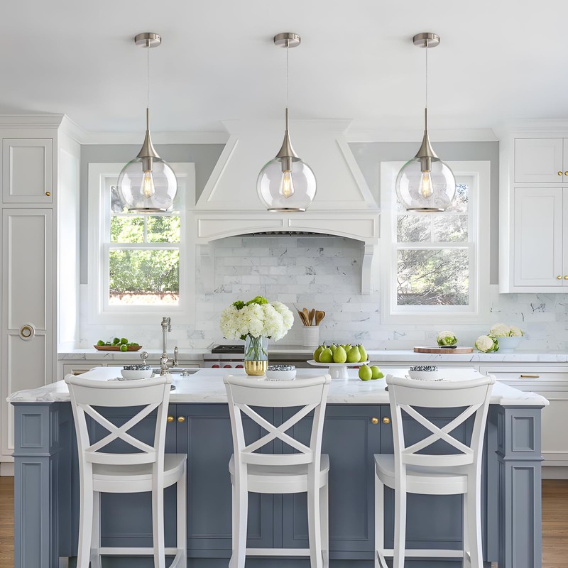 - Mid-Century Design - The HAHZT Kitchen Island Pendant Lights feature a 10-inch glass globe that perfectly captures the essence of mid-century modern style, elevating the aesthetic of your kitchen or dining room with timeless elegance