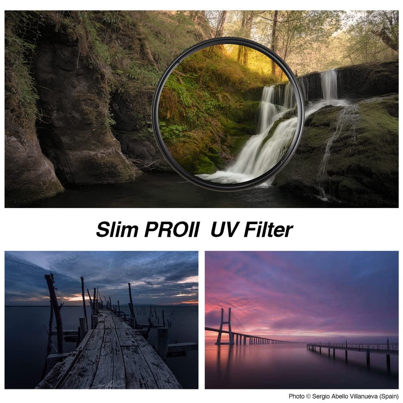 • Haida SLIM PROII UV FILTER It is a generally usable clear filter designed to absorb ultraviolet light and reduce the bluish deduction of daylight. Apart from reducing unwanted blue tones, no additional coloring or contrast is produced, and adjustments to exposure are not required while using this filter.