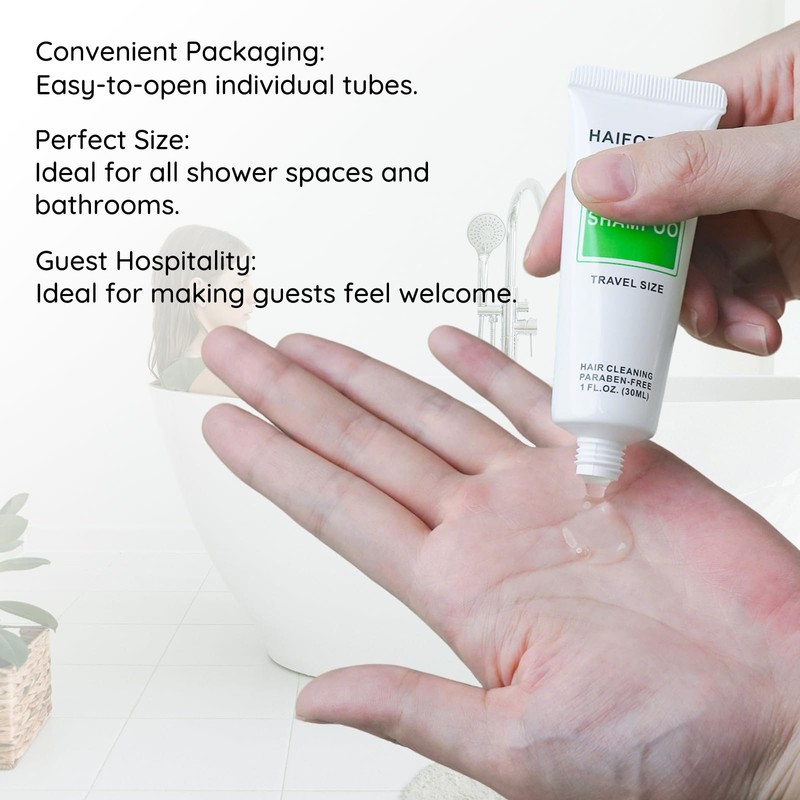 - EASY TO CARRY: The bulk hotel shampoo size 3.93x1.57inches,30ml/1 fl oz. Individually packaged, mini shampoo can be stored in many places or carried around.It doesn't take up extra space and can be placed in pockets, handbags, suitcases, etc