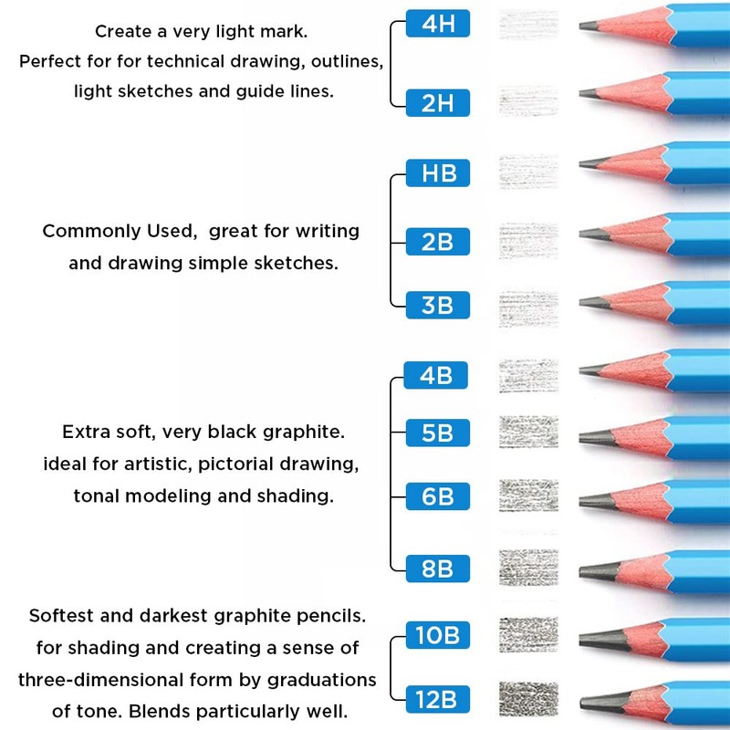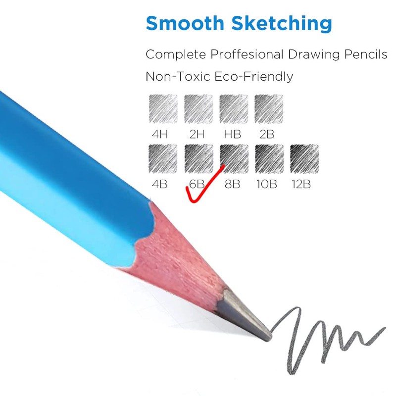 - 【Non-Toxic Eco-Friendly】 The art pencils is made of non-toxic and eco-friendly materials. Special bonding of the pencils makes the graphite leads extra break resistant, and gives them superior long lasting point strength. The graphite is even, smooth, blends easily. They allow designers, illustrators, and artists to create best work on paper, sketchbooks, sketch pads, and any other medium.
