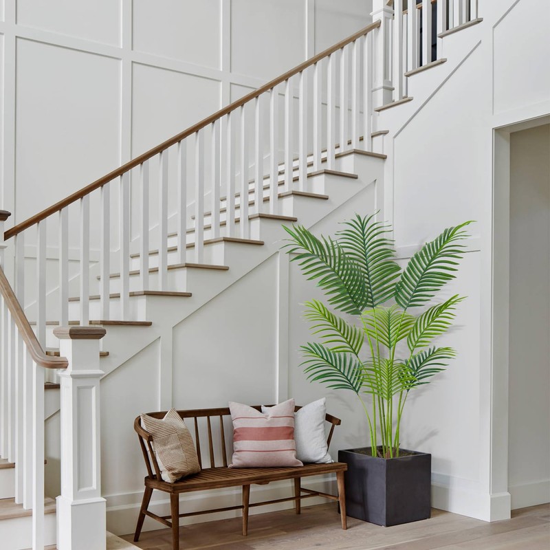 - 【Three Size Artificial Palm Tree】There are 4ft、4.5ft and 6ft fake golden cane palm tree for you to choose,the 4 ft has 9 realistic leaves ,the 4.5 ft has 15 realistic leaves, and the 6ft has 20 realistic leaves. after you receive, you need to simple assembly, Faux Palm tree have strong internal metal wires, so you can adjust the trunk to the shape as you like without worrying about the trunk breaking.
