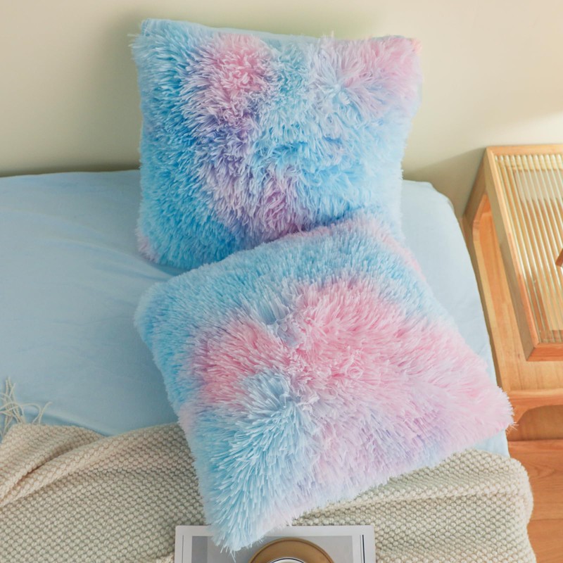 - [You can get these]: 2 fur throw pillow covers (Note: Includes fur throw pillows only does not include inserts or fillers).fuzzy pillow covers size 18"x 18"inch (45.7cm x 45.7cm)Vacuum packaging is used to keep the fluffy throw pillows clean during transport. Wash and dry it in low heat, or expose it to the sun and pat gently to make them as fluffy as advertised