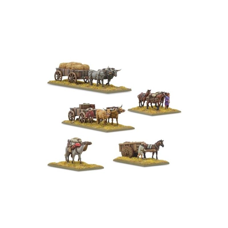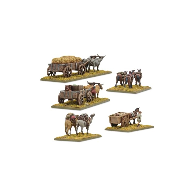 • A baggage train is an essential supporting element of any army, and this characterful pack of beasts of burden is the perfect accompaniment to your Epic Battles army!